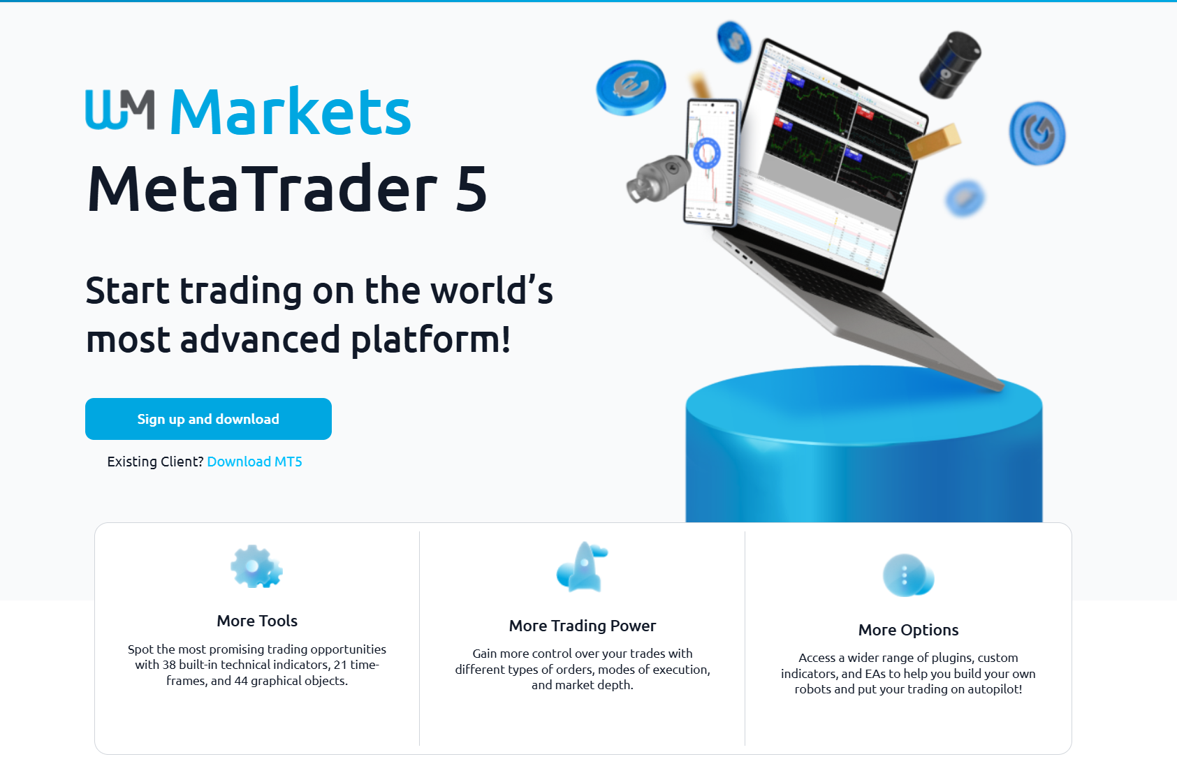 با استفاده از متاتریدر 5 WM Markets، میتوانید از ابزارهای پیشرفته تحلیلی و قابلیتهای گستردهتر این پلتفرم بهرهمند شوید و معاملات خود را با دقت و سرعت بیشتری مدیریت کنید.